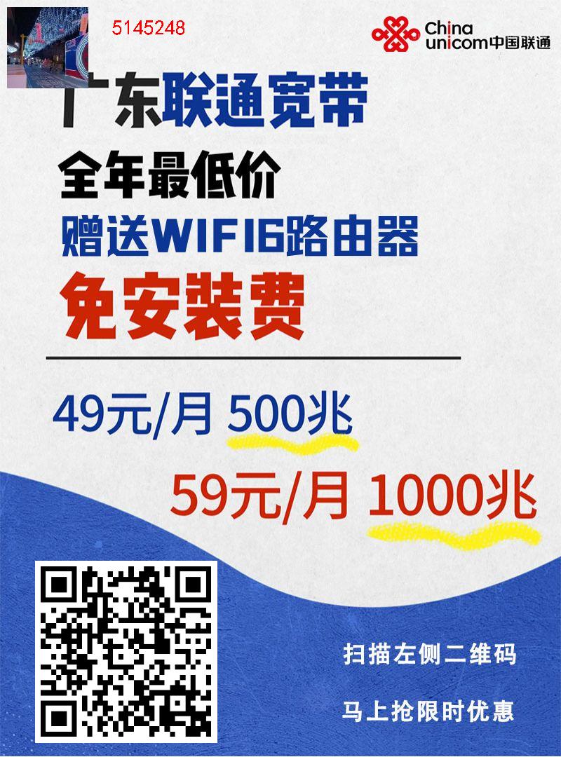 1000M的千兆宽带,最低月费仅59元/月,还限时免安装费+送路由器+送机顶盒